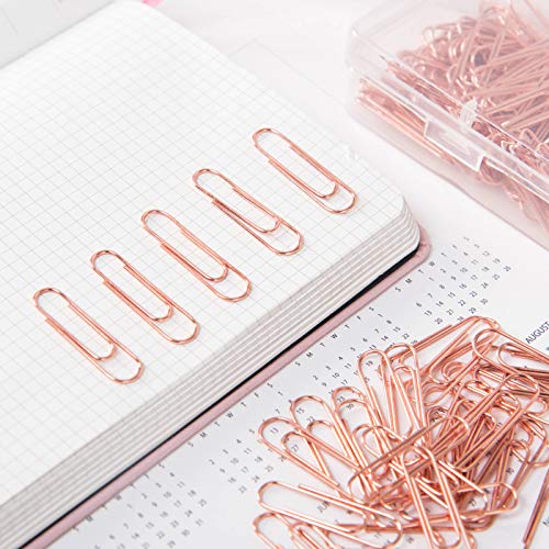2. 【Handige opslag】: Rose Gold paperclips liggen in een plastic container, gemakkelijke toegang en houden uw bureau en lade netjes.