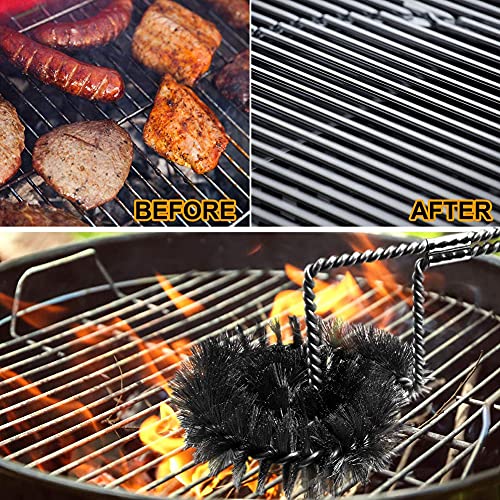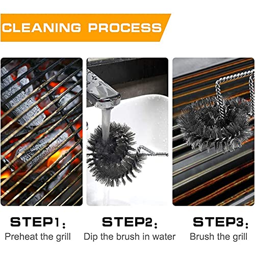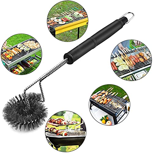 Duurzaam: de grillborstel is gemaakt van roestvrij staal en heeft uitstekende reinigingskracht. De 360 ° ronde reinigingsborstel kan alle residuen schoonmaken. De plastic handvat keurt antislipontwerp goed, waardoor het handvat stevig is en gemakkelijk te beheersen en heeft een langere levensduur.