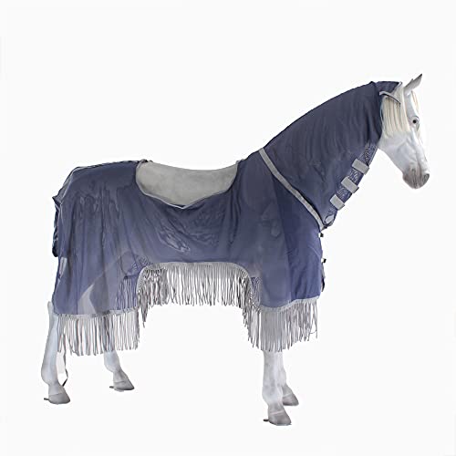 Vliegendeken met extra franjes aan het onderste plafond die bij het rijden heen en weer bewegen en zo vervelende insecten verdrijven.