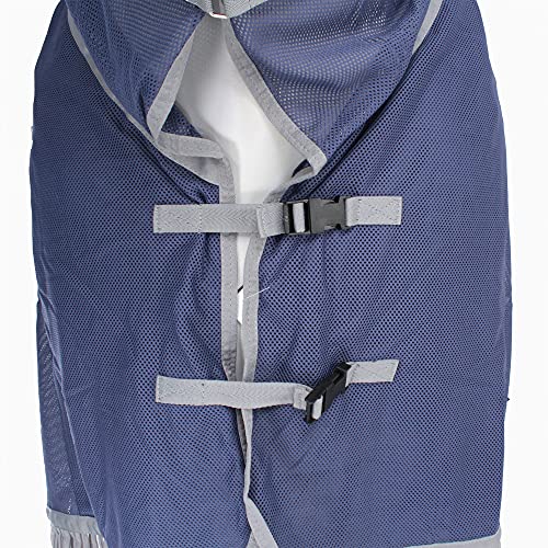 halsdeel met klittenbandsluitingen, ook naar beneden rolbaar en veilig met banden te bevestigen.