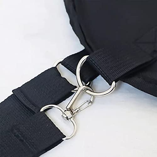 Sterke gesp en verstelbare bandjes met haak aan de uiteinden voor snel verwijderen en ophangen.