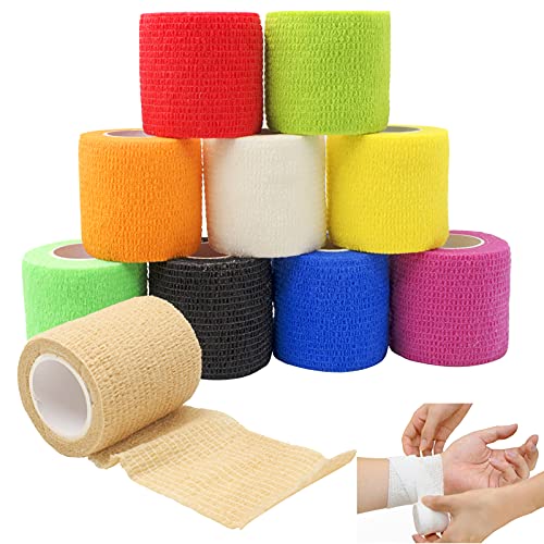 Hossom Zelfklevend Verband Zelfklevend,10 Rollen 5cm x 4,5m, Flexibele Cohesieve Verbanden, Elastisch Ademend…
