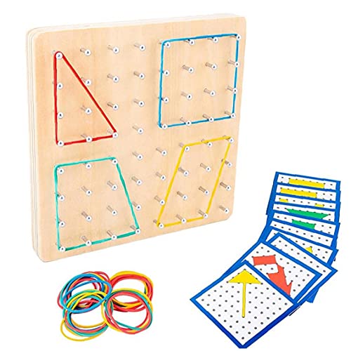 MATERIAAL: Het educatief speelgoed is uitgerust met een 18-delige geometrische kaarten, 5 lege kaarten en voldoende rubber bands.Geometry nail board ziet simpel uit, maar het is leuk voor kinderen