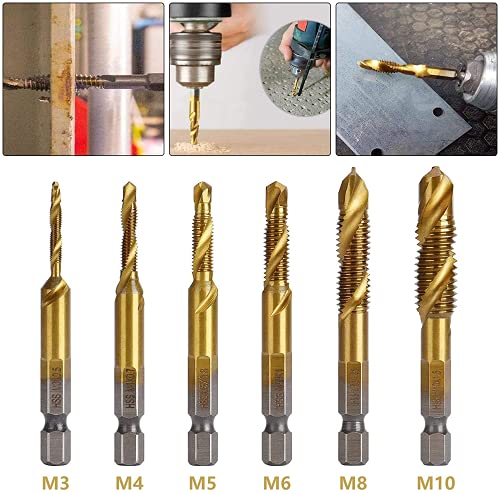 ✅【Wat je krijgt】 Set van 6 boortapbits in metrische maten M3x0,5 M4x0,7 M5x0,8 M6x1 M8x1,25 M10x1,5 Korte maat is niet gemakkelijk te schudden en kan nauwkeurig boren.
